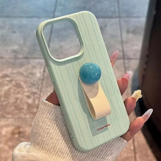 Simple Line 3D Ball Ring Buckle Bracket Leather Texture Soft Case