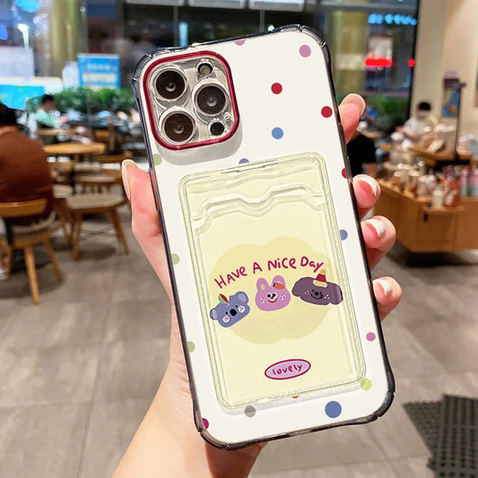 Card Slot Bag Holder Cute Dog Cartoon Puppy Clear Phone Case