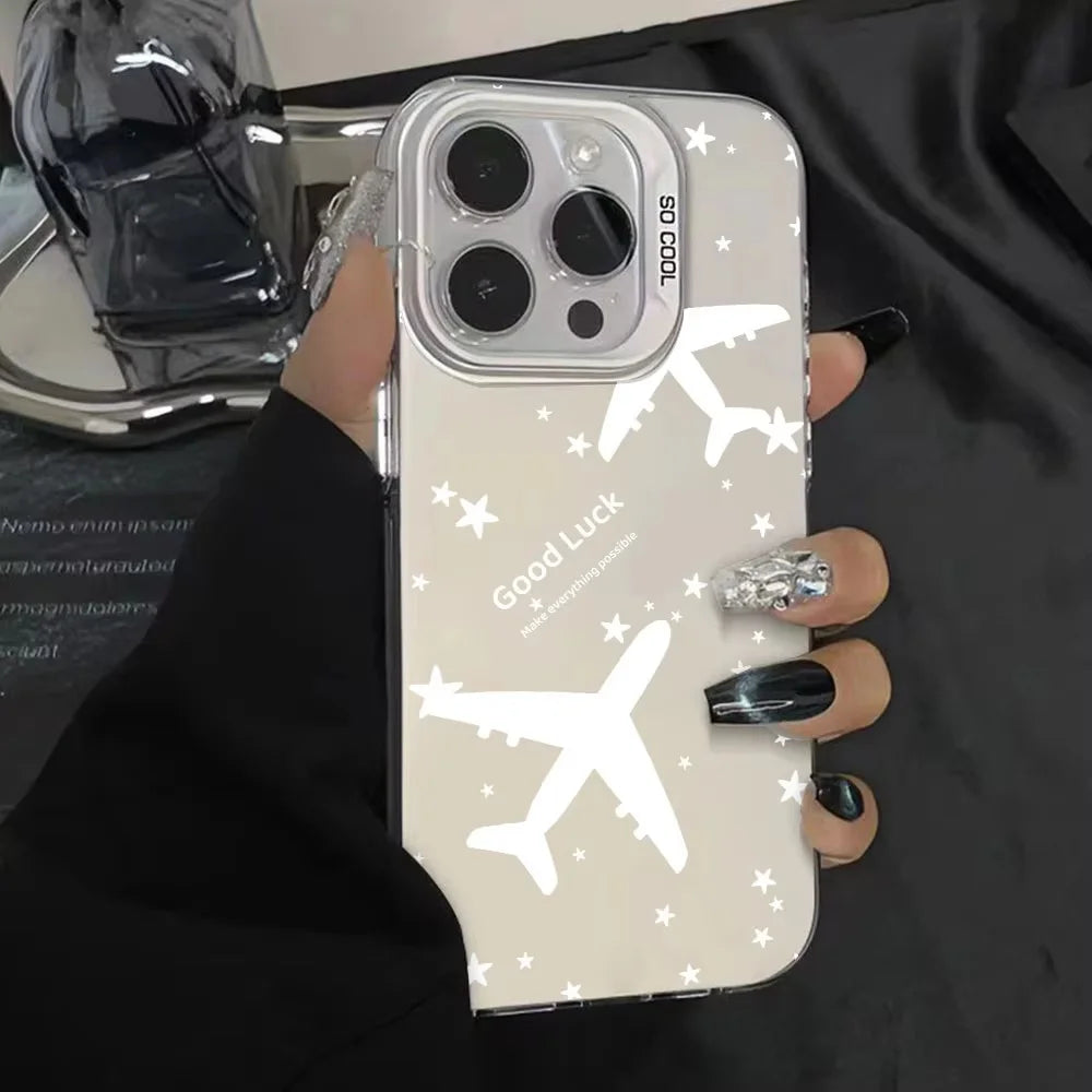 Fashion Stripe Pattern Lens Protect Plating Back Cover Fundas Phone Case